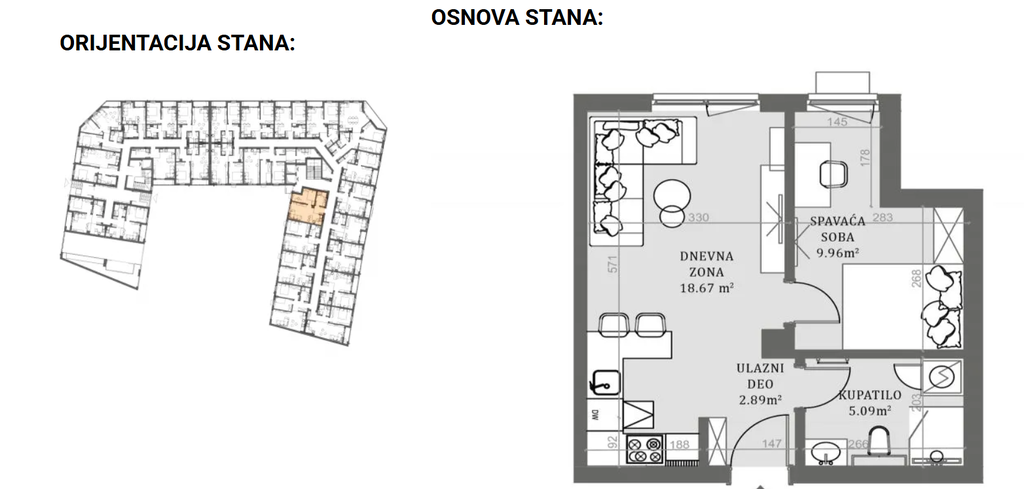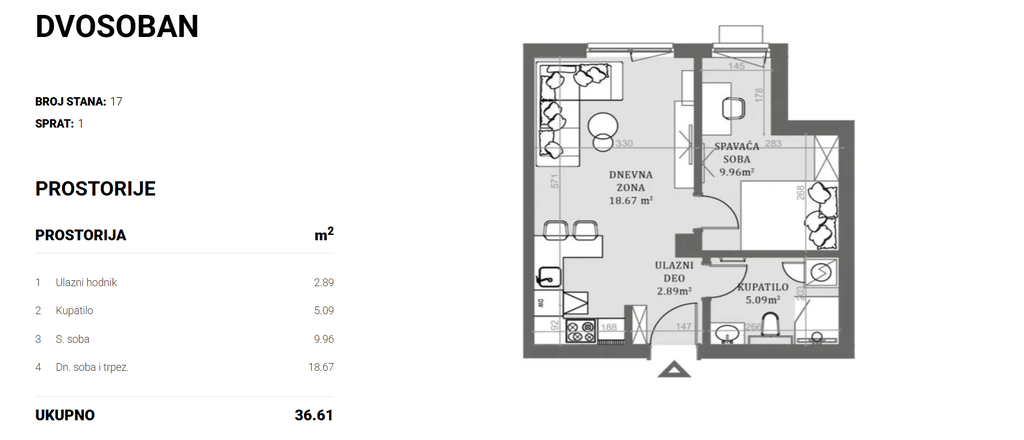 Apartment in a new building with an area of 45.72 m2, consisting of a living room with a kitchen and dining room, a bedroom, a bathroom and a terrace. The building is made of thermoblocks with the highest insulating properties + insulation of a facade. The partition walls will be built of bricks. Tarket floor coverings in the rooms and dining room, and Class 1 ceramics in the kitchen and bathroom. Shower screen made of tempered glass, a linear drain and a built-in boiler. The apartment will have a security door, optical Internet connection, intercom and air conditioning installations. Deadline for completion is the last quarter of 2026.