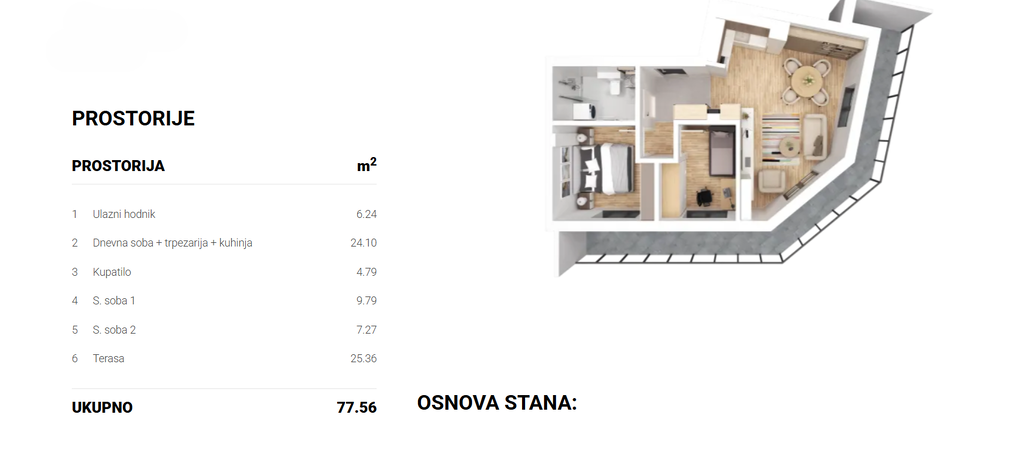 Apartment in a new building with an area of 77,56 m2, consisting of a living room with a kitchen and dining room, a bedroom, a two bathroom and a terrace. The building is made of thermoblocks with the highest insulating properties + insulation of a facade. The partition walls will be built of bricks. Tarket floor coverings in the rooms and dining room, and Class 1 ceramics in the kitchen and bathroom. Shower screen made of tempered glass, a linear drain and a built-in boiler. The apartment will have a security door, optical Internet connection, intercom and air conditioning installations. Deadline for completion is the last quarter of 2025.
