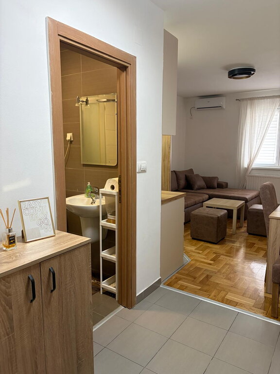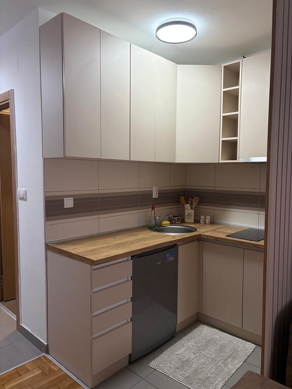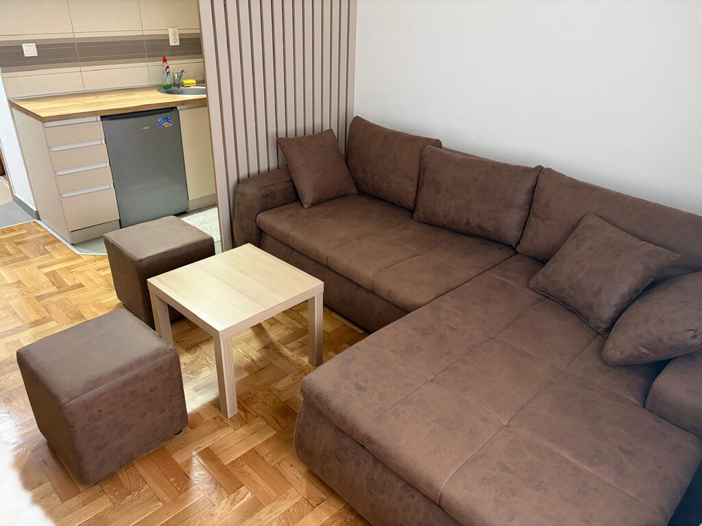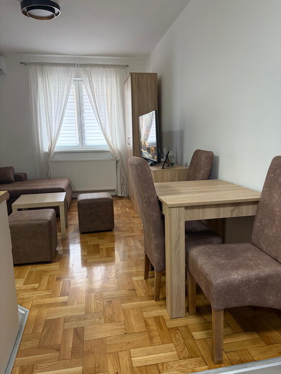 A 22m2 studio apartment for rent in Prozivka. It is located on the high ground floor and consists of a room with a kitchen and a bathroom. The windows are PVC, the floors are parquet and tiles, and the heating is gas. The apartment has internet and a TV package. Mandatory deposit in the amount of one rent, minimum rent 6 months for non-smokers, no pets.