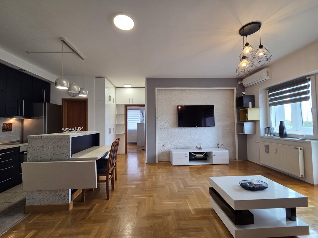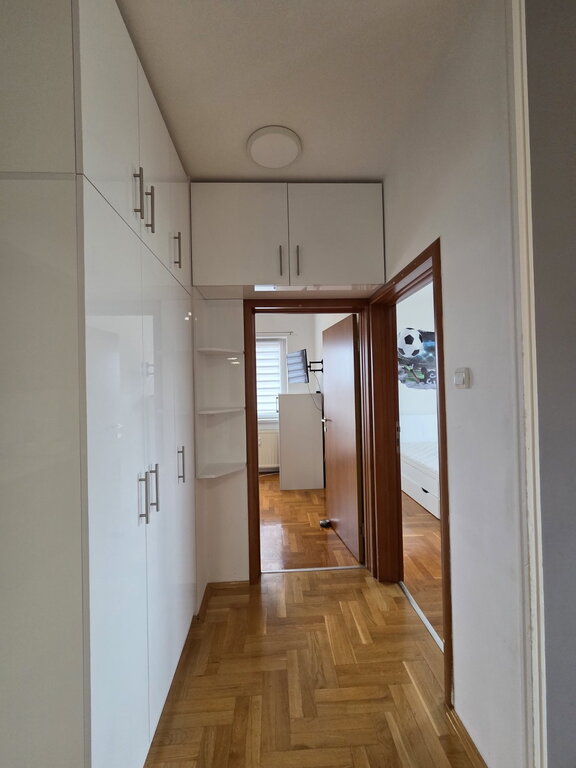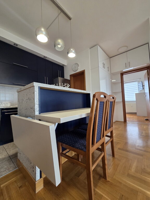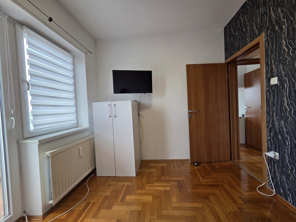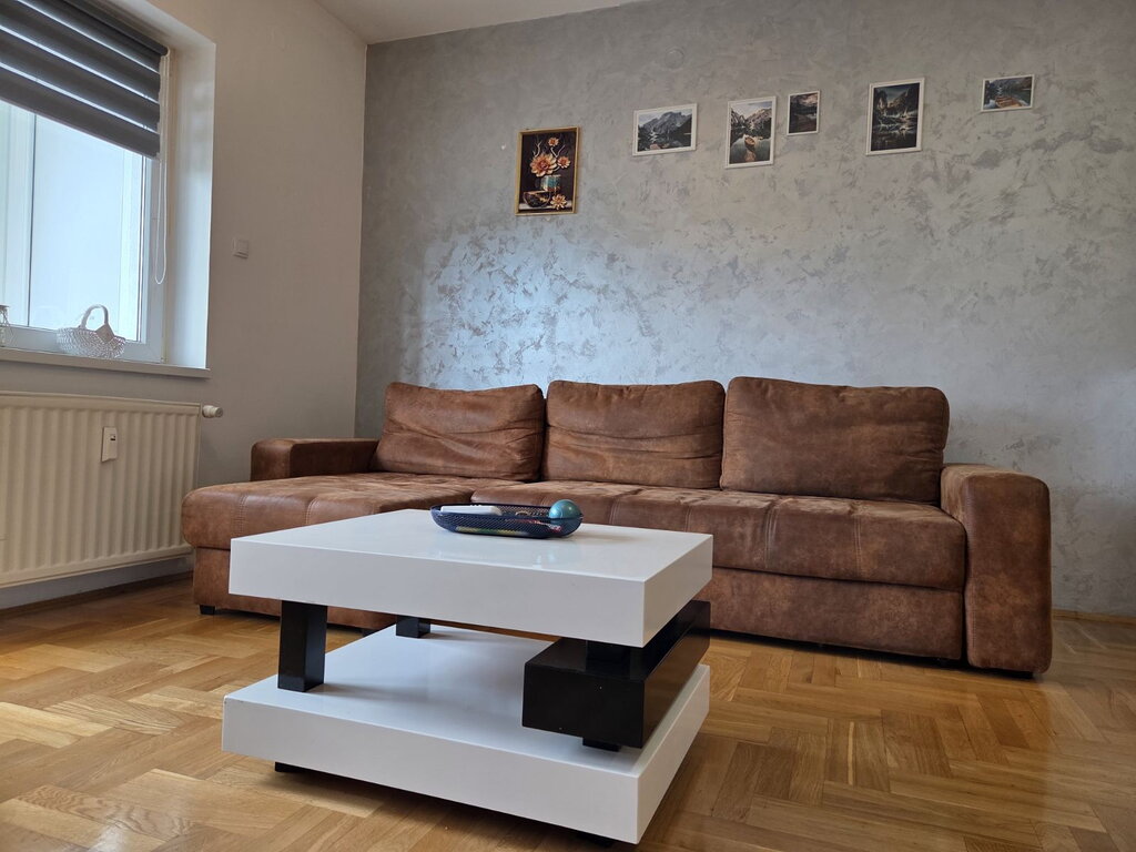 A fully renovated courtyard apartment of 47m2 in the city center is for rent. It consists of a living room, a small bedroom, a kitchen with a dining room, a pantry and a bathroom. The floors are laminate and tiles, transparent PVC, and the heating is gas. There is a secured parking space in the yard, as well as the use of a small shed. Mandatory deposit in the amount of one rent, minimum rent 6 months for non-smokers, no pets.