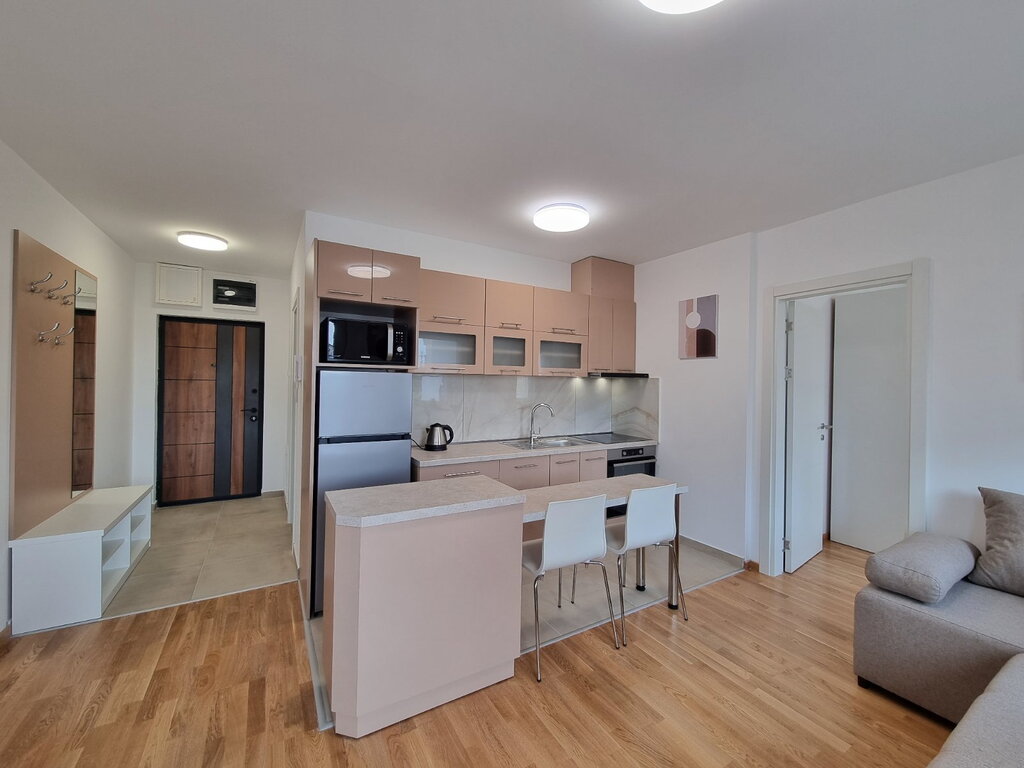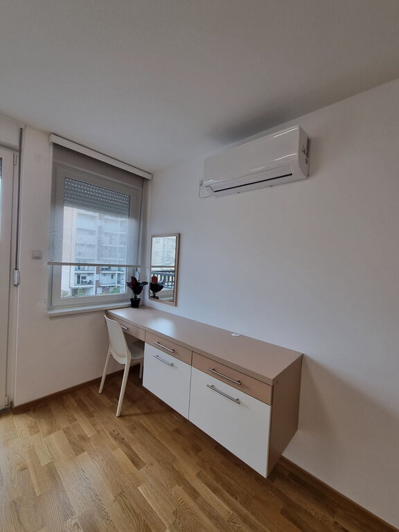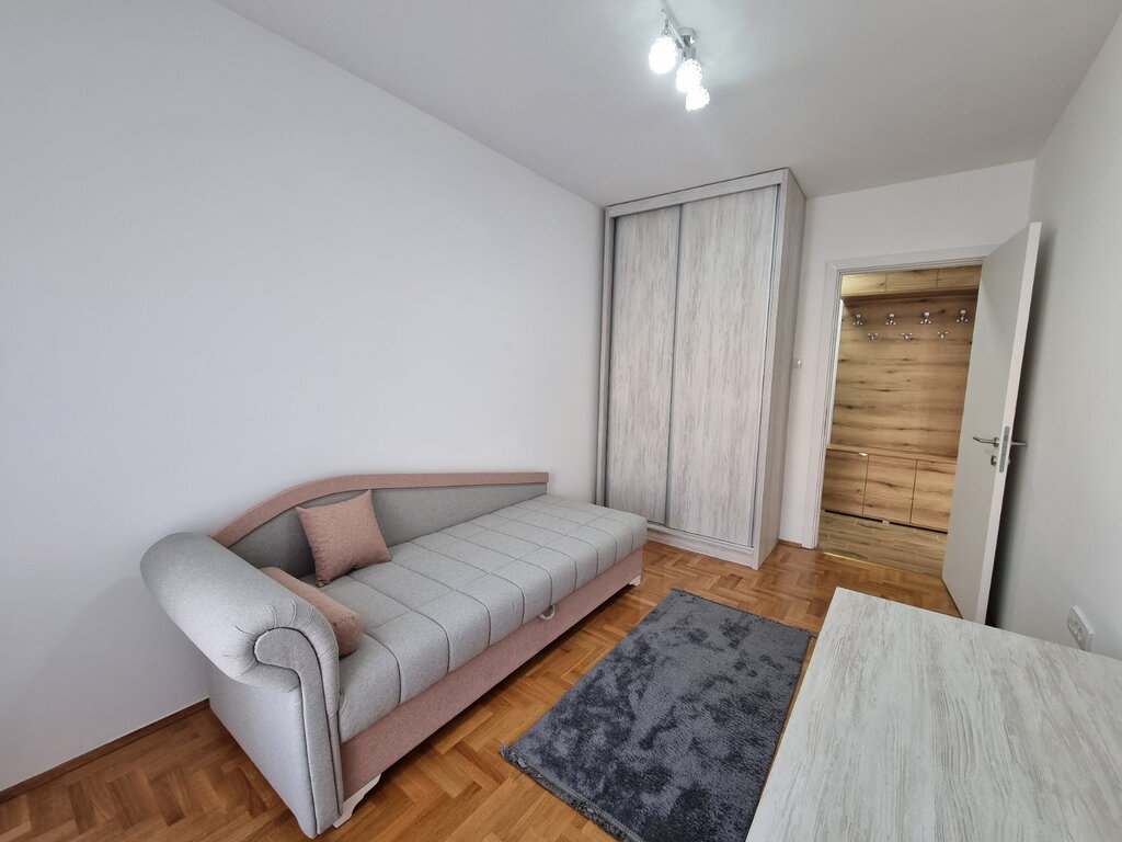 Completely renovated semi-furnished two-room apartment in Radijalac. It is located on the high ground floor, the area is 58m2 and consists of a kitchen with a dining room, two large rooms, one of which has a built-in wardrobe and a bathroom. The floors are parquet and wooden planks, the windows are PVC, and they are connected to the city heating plant. Available from 01.05.2026.