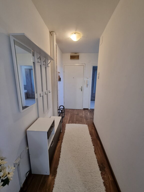 One-room apartment of 32m2, located in the city center on 2/5 floors and in a building with an elevator. It consists of a room with a dining area and a kitchen that leads to a terrace and a bathroom. The floors are parquet, the windows are PVC, the heating system is city heating. Deposit in the amount of one rent, minimum rent 6 months for non-smokers, no pets.