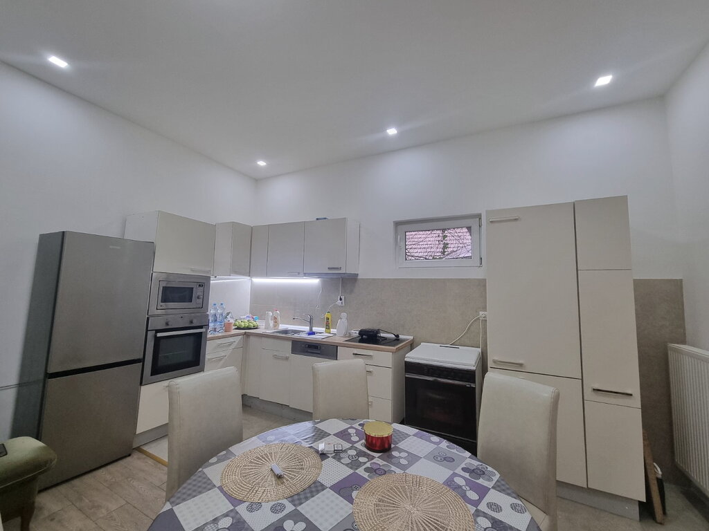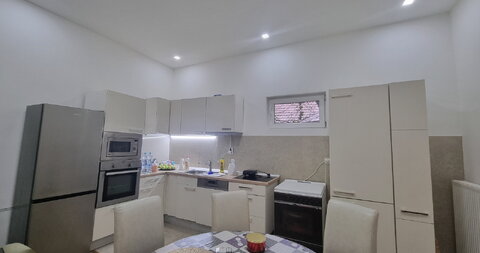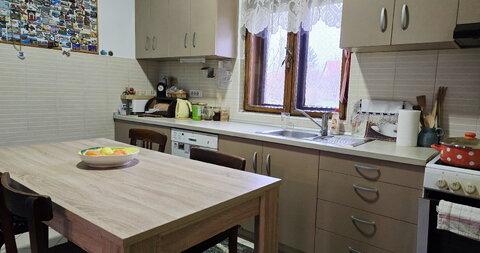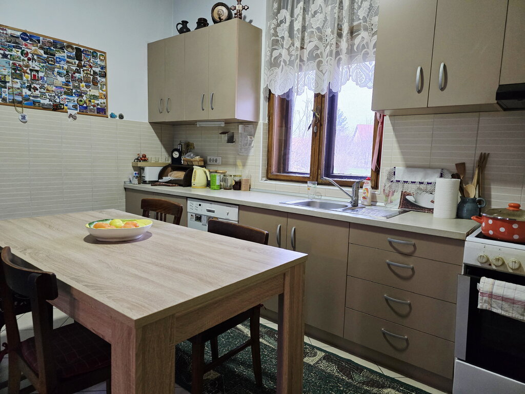 Completely renovated family house of 170 m2. New internal water and sewage network, electrical lines and installations, modern gas central heating and hot water supply system. New PVC windows and doors, automatic garage door, thermal insulation of the roof and walls. There are tiles and laminate on the floors. In addition, a security network, entrance management, cameras and an alarm system were installed.