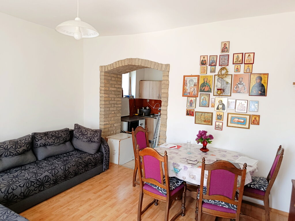 In Mali Radanovac area, in a good location, a one-story family house with an area of 149m2 on a plot of 525m2 is for sale. It is built of solid materials, insulated and consists of three rooms, kitchen with dining room, bathroom and toilet. Next to the house there is also a summer kitchen and two rooms that serve as a workshop and a storage room. The floors of the house are laminated, the windows are PVC and the heating is on gas.