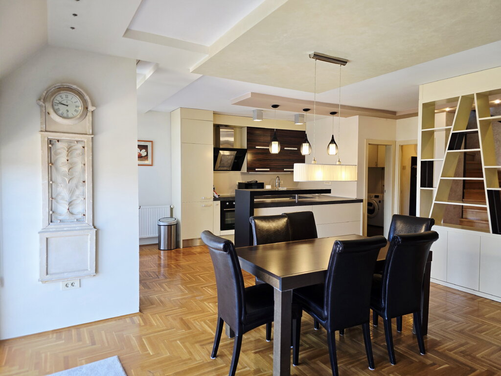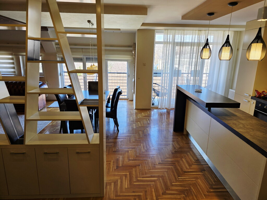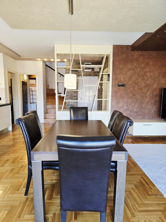 A 105m2 apartment on the 6th/6th floor in a building with an elevator is for sale in a newly built building. It has a good layout with a spacious living room, kitchen, dining room and terrace, three bedrooms and two bathrooms. The apartment is sold semi-furnished with a kitchen and built-in closets.