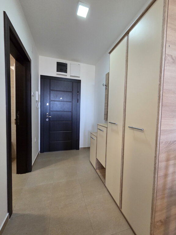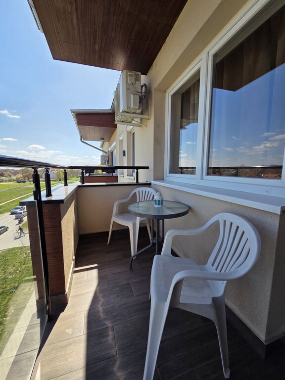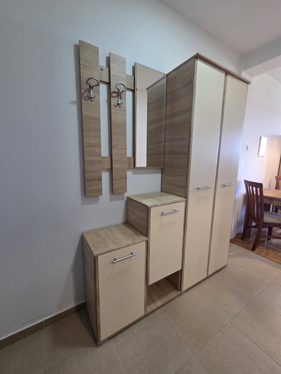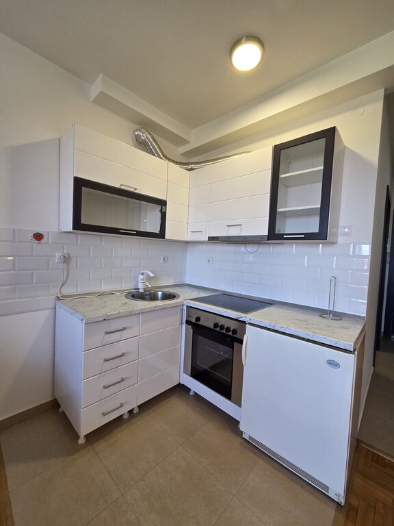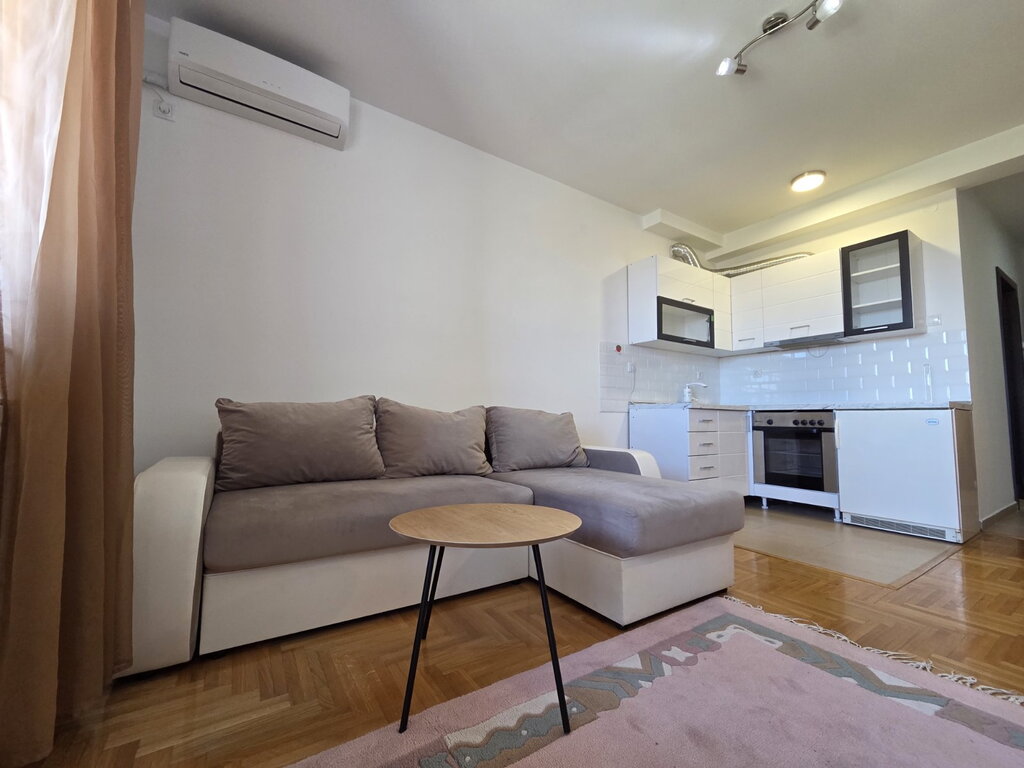 Izdaje se garsonjera oivršine 31m2, nalati se na 3/3 sprata u zgradi sa liftom. Sastoji se od sobe sa kuhinjom i trpezarijim koja vosi na istočno orjentisanu terasu. Na podviama su parket i pločice, prozori su PVC, a grejanje je na gas. U dvorištu zgrade ima obezbeđeno parking mesto. Obavezan depozit u visini jedne kirije, minimalni najam 6 meseci za nepušače , bez kućnih ljubimaca.
