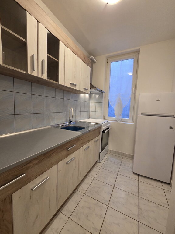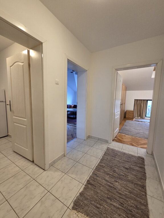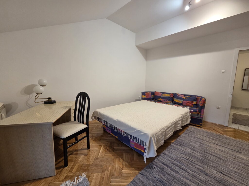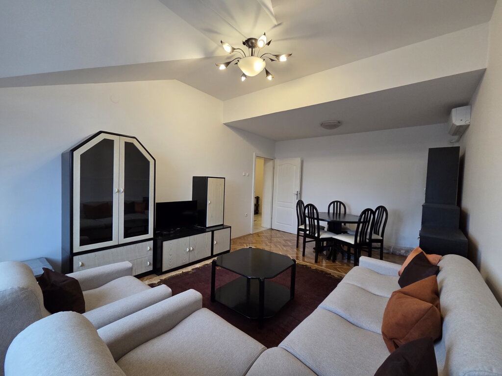 Izdaje se dvosoban kompletno renoviran stan nedaleko od centra grada, površine 58m2, nalazi se na 3/4 spatu u zgradi bez lifta. Sastoji se od dnevnog boravka sa trpezarijom, spavaće sobe, kuhinje i kupatila. Prozori su PVC, na podovima su perket i pločice, a grejanje je na gradsku toplanu sa alokatorima, U stanu ima TV i intrenet paket, kao i obezbeđeno parking mesto u dvorištu zgrade. Obavezan depozit u visini jedne kirije, minimalni najam 6 meseci za nepušače , bez kućnih ljubimaca.