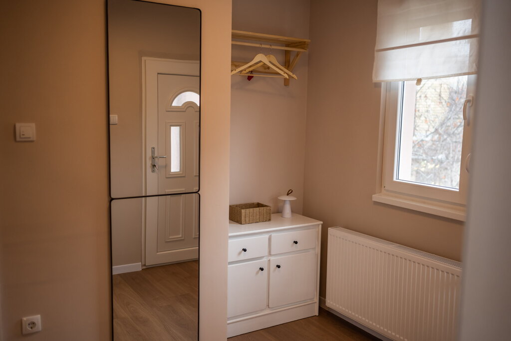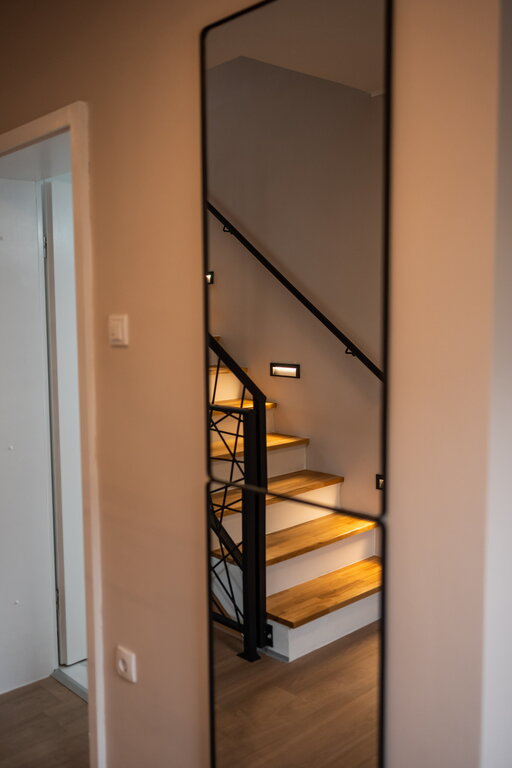Potpuno renovirana, odmah useljiva porodična kuća. Nakon godinu dana posvećene pažnje i svesnog razvoja, ovaj dragulj je dostupan za prodaju. Potpuno renovirana porodična kuća prikazana na slikama čeka svoje nove stanare, koji svakodnevno mogu da iskuse ugodan porodični život unutar ovih zidova. Ovome posebno doprinese saznanje da potpuno nova unutrašnja vodovodna i kanalizaciona mreža, električni vodovi i instalacije, moderan gasni sistem centralnog grejanja i snabdevanja toplom vodom, novi PVC prozori i vrata, automatska garažna vrata, toplotna izolacija krova i zidova - sve to će omogućiti nesmetano korišćenje kuće godinama. Pored toga, bezbednosna mreža, odnosno sistem za daljinsko upravljanje ulazom, kamere i alarmni sistem, takođe služe udobnosti i bezbednosti stanara kuće. Zahvaljujući prostranoj, natkrivenoj terasi okrenutoj ka istoku, možete uživati u jutarnjoj kafi ili kakau napolju od ranog proleća do kasne jeseni. Ista terasa predstavlja organsku vezu između kuhinje i dvorišta, pružajući odličnu lokaciju za organizovanje baštenskih zabava, porodičnih i prijateljskih okupljanja. Raspored prostorija može zadovoljiti potrebe svih stanara kuće, jer je funkcionalnost bila primarni motiv u dizajnu enterijera. Kao rezultat toga, suteren ima garažu i radnu sobu, kao i prostranu vešernicu, koja je istovremeno i garderober, sa zadnjim vratima prema bašti. Na visokom prizemlju nalazi se sve za svakodnevni život, uključujući dnevnu sobu, spavaću sobu, kupatilo sa tušem, kao i kuhinju i trpezariju, sa direktnim pristupom natkrivenoj terasi. Stepenište, koje se proteže sredinom kuće, vodi od suterena do potkrovlja. U potkrovlju se nalaze još dve spavaće sobe, koje se mogu koristiti bilo kao dečije sobe ili kao porodični dnevni boravak. Pored toga, u potkrovlju se nalazi udobno kupatilo sa kadom, a ova prostorija je takođe obogaćena prostorom za odlaganje stvari. Oprema u kući već čeka nove vlasnike, kao što su sudopera i prostrani garderobni ormar u vešernici, police za odlaganje stvari u garaži, kuhinja opremljena ugradnim aparatima (frižider, zamrzivač, mašina za pranje sudova, ploča za kuvanje, rerna, aspirator), prostrana komoda sa radnom pločom koja obogaćuje trpezariju, kao i snežno beli nameštaj u dečijoj sobi. Mirno okruženje odiše spokojem, ali lokacija kuće pruža odličan pristup turističkom delu Palića (20 minuta hoda), centru Palića (15 minuta hoda), palićkoj školi (8 minuta hoda), stajalištima gradskog autobusa (2 i 6 minuta peške), dok se do centra Subotice možete stići za samo 10 minuta vožnje automobilom. Takođe, na svega 5 minuta hoda od kuće nalaze se prodavnica, pekara i restoran. Najbliže javno igralište je udaljeno 20 minuta hoda, a palićki vrtić je na 25 minuta pešice.
