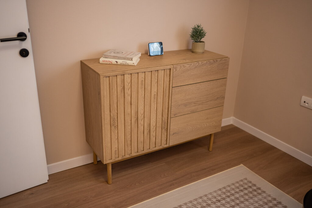 U najužem centru Subotice prodaje se kompletno renoviran dizajnerski osmišljen stan. Površine je 74m2, a čine ga prostrani dnevni boravak sa kuhinjom i trpezarijom, dve spavaće sobe, kupatilo i toalet. Opremljen je novim nameštajem i aparatima koji su uračunati u cenu stana. Na podovima je parket, prozori su PVC, a grejanje je na gradsku toplanu sa alokatrima.