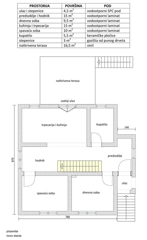 Prodaje se kuća na Radanovcu površine 128m2. smešetna na parceli od 654m2. Sastoji se od dnevne i dve spavaće sobe, kuhinje sa trpezarijim, velikog ulaznog hodnika i kupatila. Kuća je renlovirana 2024. godine. Na podovima su pličice i laminat, prozori su PVC, a grejanje je na peć na čvrsto gorivo i inverter klimu (gas je u ulici). U dvorišti je terasa ispod koje se nalazi vinski podrum i stara pomoćna zgrada.