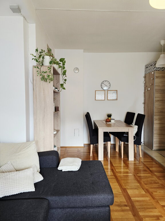 Na Prozivci u zgradi novije gradnje prodaje se namešten stan površine 73m2 na 3/3 spratu u zgradi sa liftom. Stan se sastoji od dnevnog boravka sa kuhinjom, ostavom, trpezarijom i terasom, dve spavaće sobe, kupatila i toaleta. Na podovima stana je parket, prozori su PVC a grejanje je gradsko sa alokatorima. U dvorištu zgrade postoji mogućnost korišćenja parking mesta.
